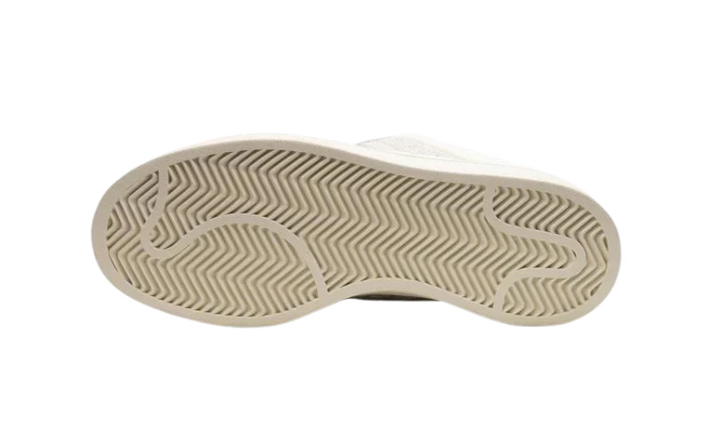 Las Adidas Campus x Bad Bunny - Cream se destacan por detalles originales, como sus cordones únicos y la banda de goma que se extiende más allá de la entresuela, actuando como un guardabarros. Además, incorporan la firma de adidas en elementos como las tres rayas laterales y se fusionan con el icónico logo del ojo de Bad Bunny en la lengüeta.